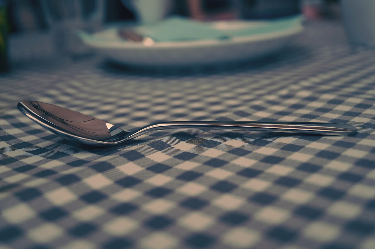 利き手ではない方の手で栓のすぐ下をしっかりと持ち、利き手でスプーンの口にする方を栓のギザギザに引っかけます。