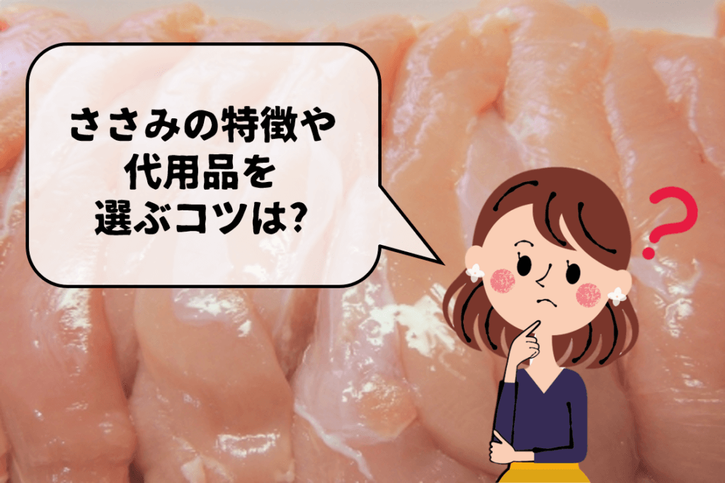 ✔ ささみの代用品は「脂質が少ないもの」または「味が淡泊なもの」を選ぶと良い。
