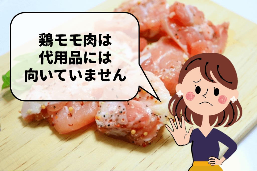 一般的な料理によく使われるお肉で汎用性はあるのですが、ささみの代わりに使うのは不向きと言えるでしょう。