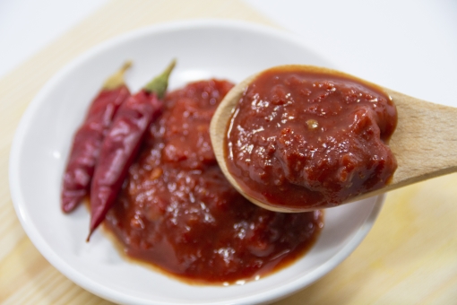 コチュジャンは韓国の調味料で、もち米麹と粉唐辛子を主材料とした発酵食品です。