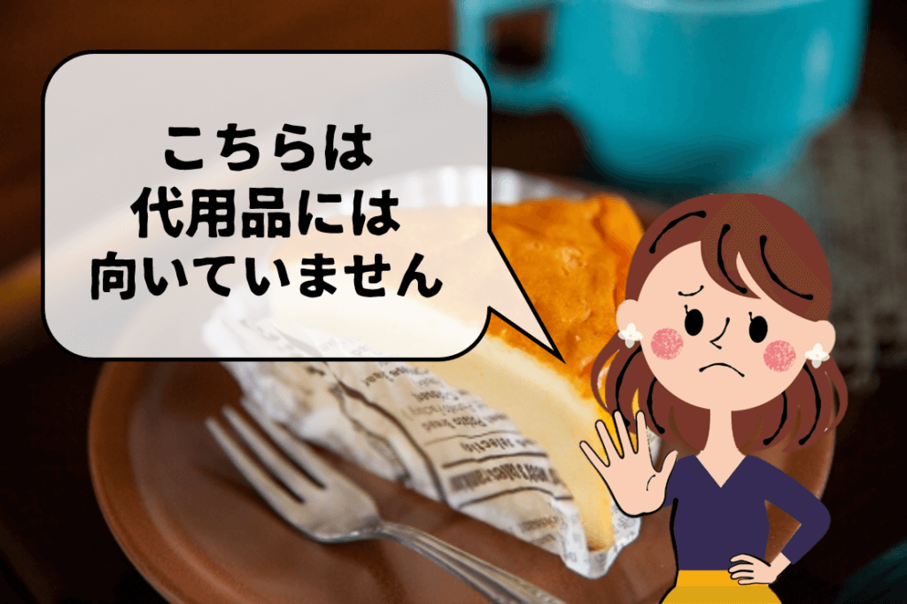 どの代用品を使うかによって仕上がりや食感、味に個性が出るので、ぜひお気に入りの代用品を見つけてみてくださいね。