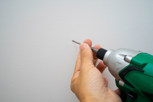 ドリルドライバーを代用品するときは、先端に穴開け用のビットを取り付けてから、穴を開けたい位置でトリガーを引くだけでOKです。