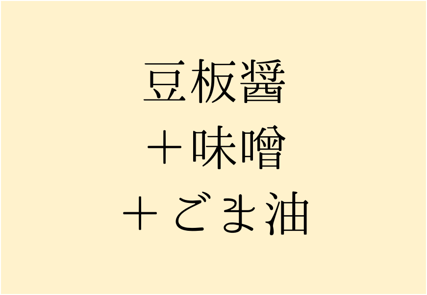 【豆板醤+甜麺醤(テンメンジャン)、豆板醤+味噌+ゴマ油、豆板醤+サムジャン、甜麺醤+味噌+ラー油、味噌+ニンニク+一味唐辛子+砂糖、味噌+キムチの素】