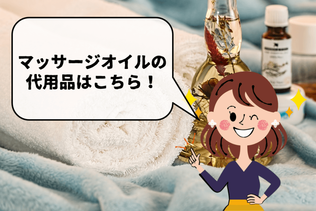 滑りを良くしたり血行を良くする目的で使用するマッサージオイルですが、代用品として使用できなくはないものの、選び方や使用方法などに工夫が必要なものなどを紹介します。