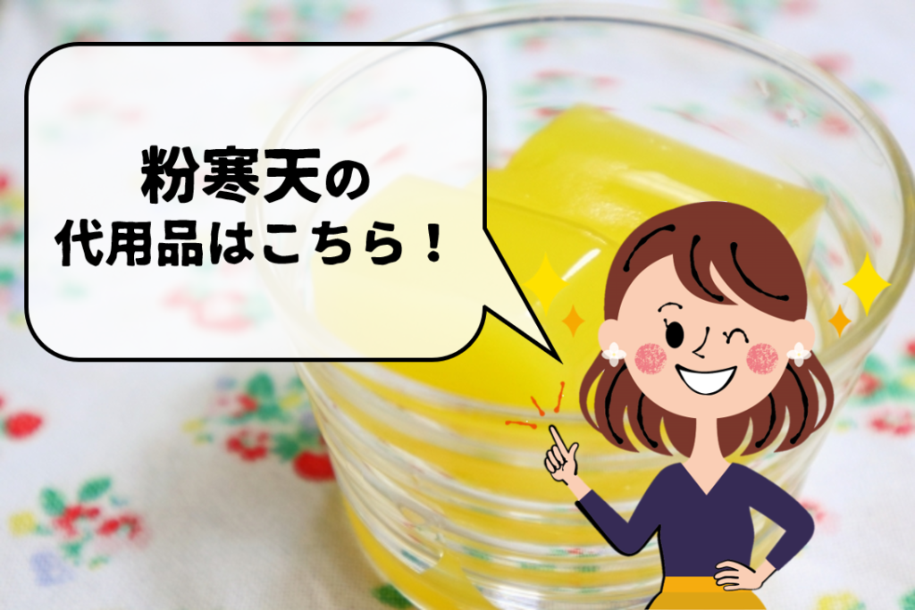 ✔ 粉寒天の代用品を探すときは、液体だったものを固めることができるものを選ぶと良い。