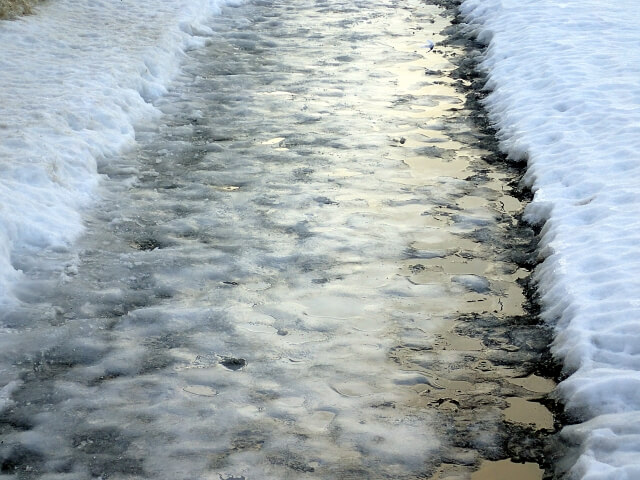 これが道路で行われるとアイスバーンとなり、転倒やスリップ事故の原因となります。