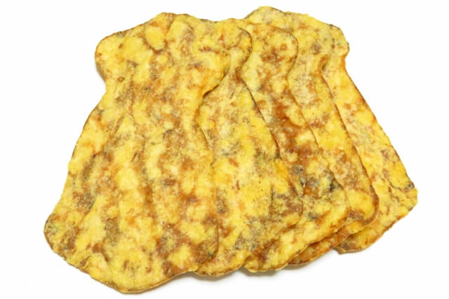 エビの味がついているかっぱえびせん。塩味も付いているので、お好み焼きの味にいいアクセントを与えてくれます。